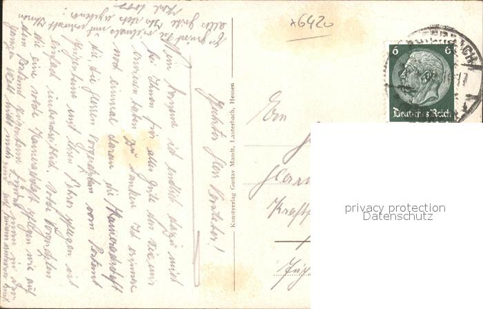 41781512 alte Postkarte Lauterbach Hessen im Mondschein Kirche Strumpflied weinendes Kind Wappen postalisch gelaufen Erhaltung siehe scans KatCode: 11110006535011