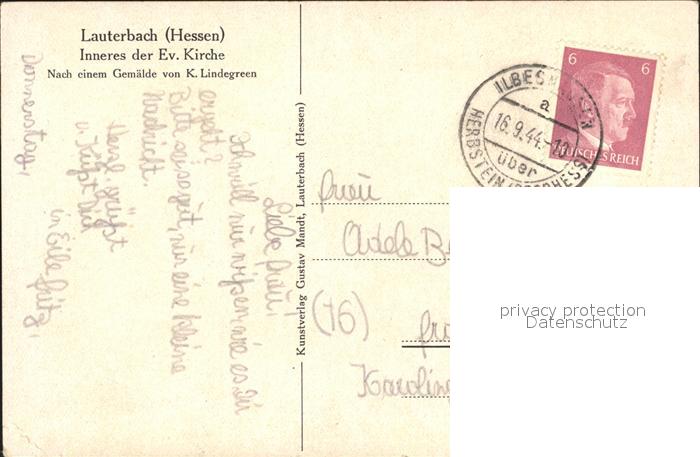 72129069 alte Postkarte Lauterbach Hessen Inneres der Evangelischen Kirche postalisch gelaufen KatCode: 11110006535011