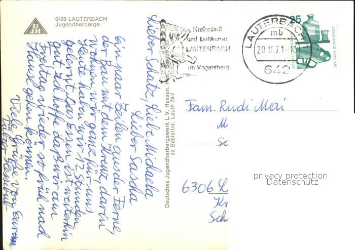 72507662 alte Postkarte Lauterbach Hessen Jugendherberge postalisch gelaufen Erhaltung siehe scans KatCode: 11110006535011