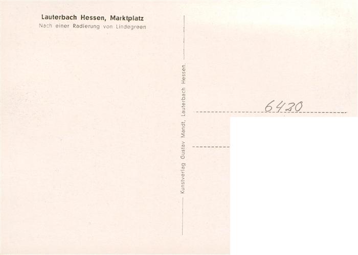 73902361 Lauterbach Hessen Marktplatz Radierung postalisch nicht gelaufen Erhaltung siehe scans [FriedD77] KatCode: 11110006535011