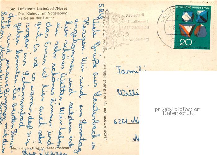 73216750 alte Postkarte Lauterbach Hessen Partie an der Lauter Altstadt Kirche postalisch gelaufen Erhaltung siehe scans [FriedD77] KatCode: 11110006535011