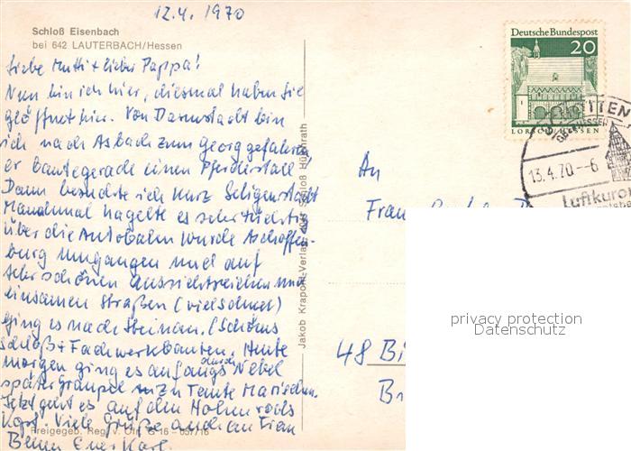 73091757 alte Postkarte Lauterbach Hessen Schloss Eisenbach postalisch gelaufen Erhaltung siehe scans [KathaD81] KatCode: 11110006535011