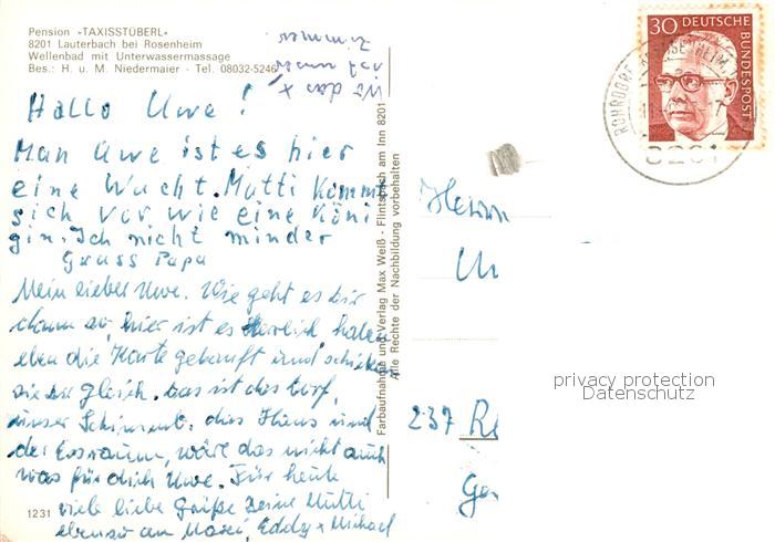 73860094 alte Postkarte Lauterbach Rosenheim Pension Taxisstueberl postalisch gelaufen Erhaltung siehe scans [WerneD78] KatCode: 11110009187169
