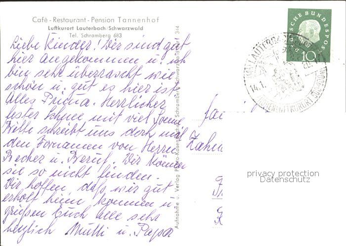 72064798 alte Postkarte Lauterbach Schwarzwald Cafe Restaurant Pension Tannenhof Luftkurort postalisch gelaufen Erhaltung siehe scans KatCode: 11110008325036
