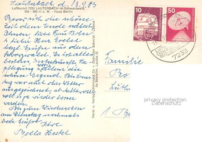 73748026 alte Postkarte Lauterbach Schwarzwald Haus Berlin postalisch gelaufen Erhaltung siehe scans [WerneD78] KatCode: 11110008325036