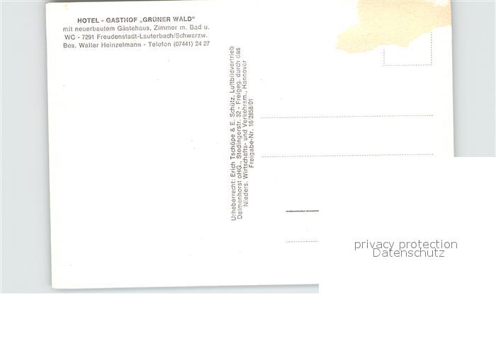 Lauterbach Schwarzwald Hotel Gasthof Gruener Wald postalisch nicht gelaufen Erhaltung siehe scans