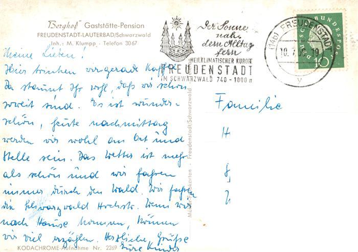73924499 alte Postkarte Lauterbad Freudenstadt Berghof Gaststaette Pension postalisch gelaufen Erhaltung siehe scans [WerneD78] KatCode: 11110008237028