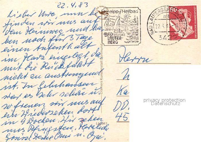73120171 alte Postkarte Lauterberg Bad Bergseilbahn Schwimmbad Jugendherberge Bismarckturm postalisch gelaufen Erhaltung siehe scans [KathaD81] KatCode: 11110003156002