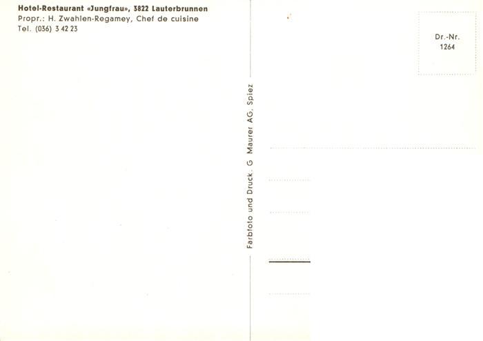 13941954 Lauterbrunnen BE Hotel Restaurant Jungfrau postalisch nicht gelaufen Erhaltung siehe scans [FriedD77] KatCode: 11470060175270