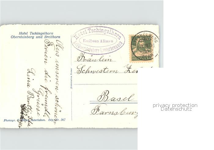 11834363 alte Postkarte Lauterbrunnen BE Hotel Tschingelhorn Obersteinberg Breithorn postalisch gelaufen Erhaltung siehe scans KatCode: 11470060175270