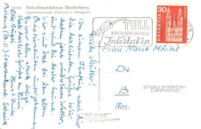 13194860 alte Postkarte Lauterbrunnental Naturfreundehaus Stechelberg postalisch gelaufen Erhaltung siehe scans [KathaD81] KatCode: 11470060175270