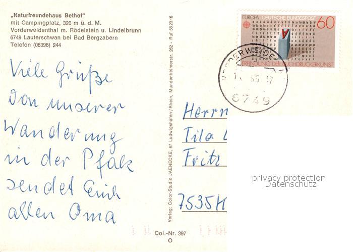 72927775 alte Postkarte Lauterschwan Naturfreundehaus Bethof Campingplatz postalisch gelaufen Erhaltung siehe scans [KathaD81] KatCode: 11110007340010