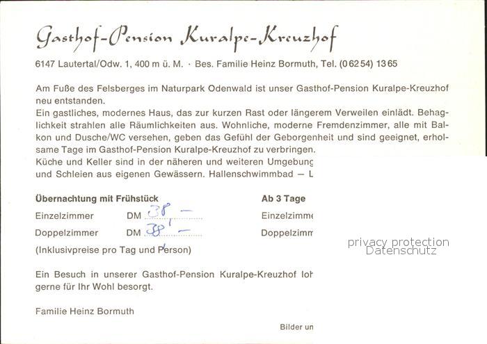 71946978 Lautertal Odenwald Gasthaus Pension Kuralpe Kreuzhof postalisch nicht gelaufen Werbekarte (keine Postkarte) Erhaltung siehe scans KatCode: 11110006431014