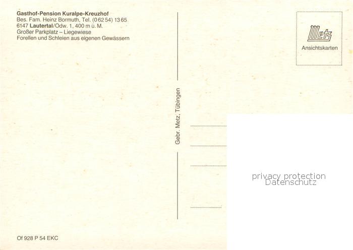 73723581 Lautertal Odenwald Gasthof Pension Kuralpe Kreuzhof Restaurant Kamin postalisch nicht gelaufen Erhaltung siehe scans [FriedD77] KatCode: 11110006431014