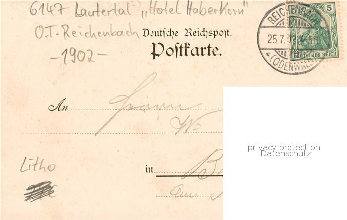 73789974 alte Postkarte Lautertal Odenwald Hotel Haberkorn – Odenwalder Trachten postalisch gelaufen Erhaltung siehe scans [LiesaD40] KatCode: 11110006431014
