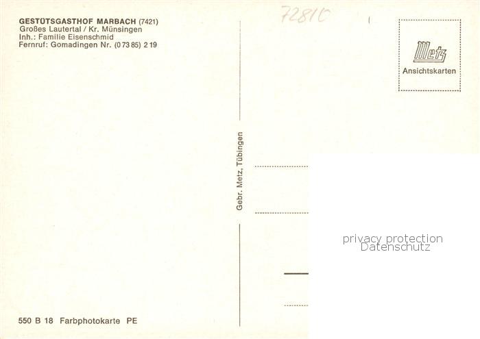 73853551 Lautertal Schwaebische Alb Fluss Lauter Gestuetsgasthof Marbach postalisch nicht gelaufen Erhaltung siehe scans [WerneD78] Wern Katcode 11110008415053