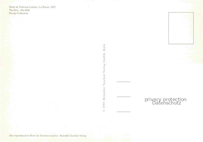 74050502 LAUTREC TOULOUSE-LAUTREC Henri de (1864-1901) Kuenstlerkarte le Baiser Der Kuss postalisch nicht gelaufen Reprokarte Erhaltung siehe scans [SanaeD93] KatCode: 22240000003200