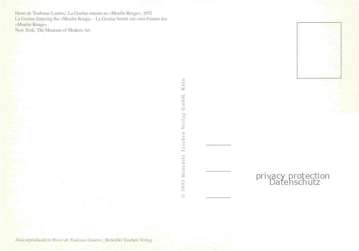 74050500 LAUTREC TOULOUSE-LAUTREC Henri de (1864-1901) Kuenstlerkarte Moulin Rouge postalisch nicht gelaufen Reprokarte Erhaltung siehe scans [SanaeD93] KatCode: 22240000003200