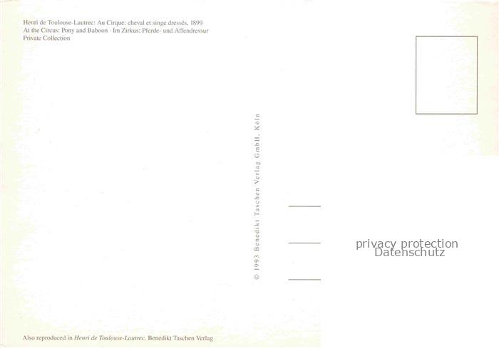 74050523 LAUTREC TOULOUSE-LAUTREC Henri de (1864-1901) Kuenstlerkarte Pferde Affendresseur postalisch nicht gelaufen Erhaltung siehe scans [SanaeD93] KatCode: 22240000003200