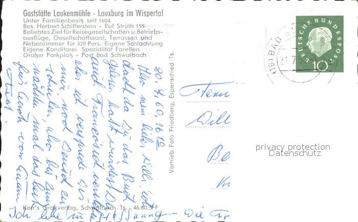 72418620 alte Postkarte Lauxburg Wispertal Gaststaette Laukenmuehle postalisch gelaufen Erhaltung siehe scans KatCode: 11110006439002