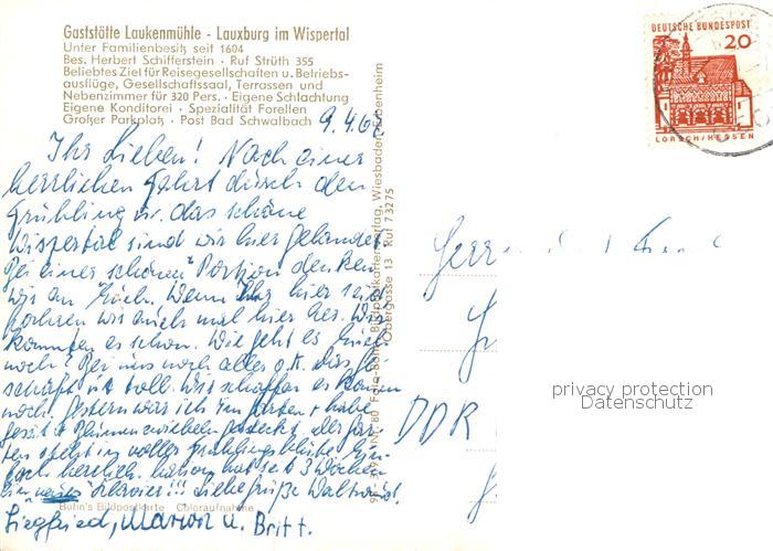 73834970 alte Postkarte Lauxburg Wispertal Gaststaette Laukenmuehle postalisch gelaufen Erhaltung siehe scans [FriedD77] KatCode: 11110006439002