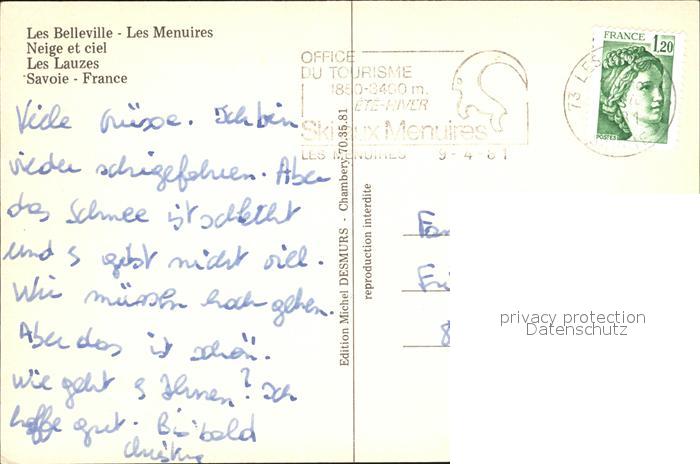 12513401 carte postale Lauzes Les Belleville Les Menuires postalisch gelaufen Erhaltung siehe scans KatCode: 11170046146162
