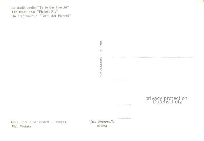 34142966 Lavagna Genua Genova Liguria IT La tradizionale Torta dei Fieschi postalisch nicht gelaufen Erhaltung siehe scans [FriedD77] KatCode: 11240