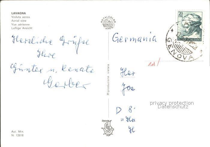 old postcard Lavagna Ortsansicht Luftbild postalisch gelaufen Erhaltung siehe scans