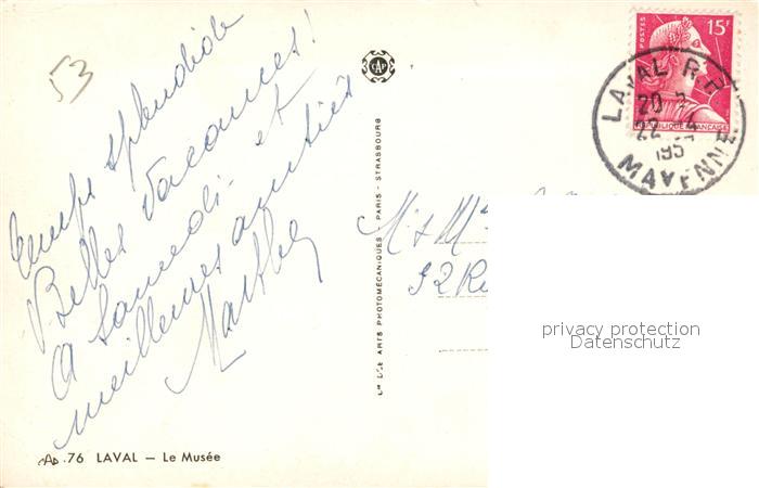 13533720 carte postale Laval Mayenne Musee postalisch gelaufen Erhaltung siehe scans [LiesaD40] KatCode: 11170053253130