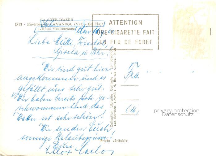13069339 carte postale Lavandou Le Hotel Mediterranee postalisch gelaufen Erhaltung siehe scans [KathaD81] KatCode: 11170083283070
