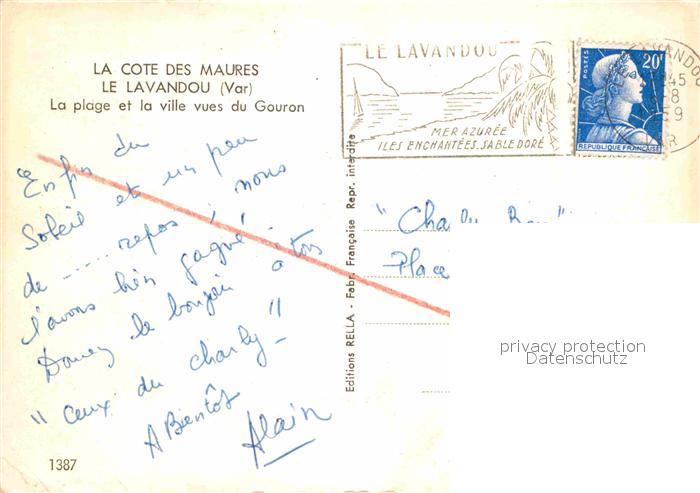 12856278 carte postale Lavandou Le Plage postalisch gelaufen Erhaltung siehe scans [NatalD47] KatCode: 11170083283070