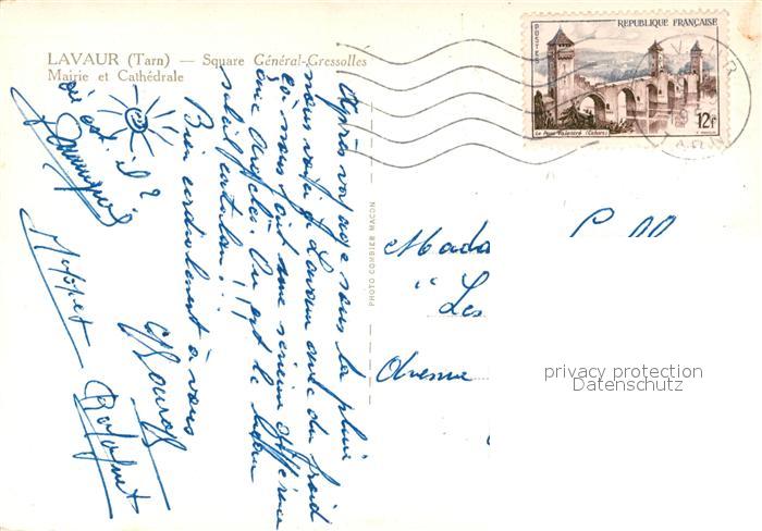 13513558 carte postale Lavaur Tarn Square General Cressolles Mairie et Cathedrale postalisch gelaufen Erhaltung siehe scans [WerneD78] KatCode: 11170081281140