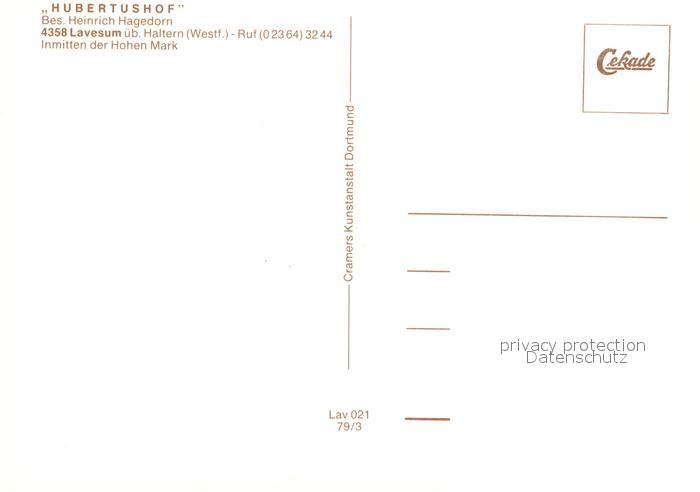 73542347 Lavesum Hubertushof postalisch nicht gelaufen Erhaltung siehe scans [KathaD81] KatCode: 11110005562016