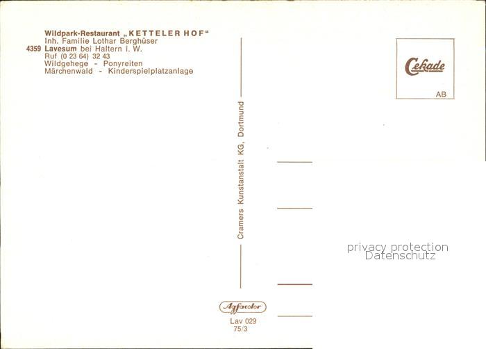 72527228 Lavesum Wildpark Restaurant Ketteler Hof postalisch nicht gelaufen Erhaltung siehe scans KatCode: 11110005562016