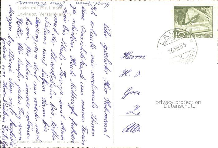11647819 alte Postkarte Lavin Panorama mit Piz Linard Silvretta postalisch gelaufen Erhaltung siehe scans KatCode: 11470100325142