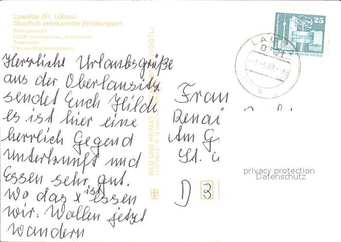 72026846 alte Postkarte Lawalde Seerosenteich FDGB Vertragshaus Kretscham postalisch gelaufen Erhaltung siehe scans KatCode: 11110014286210