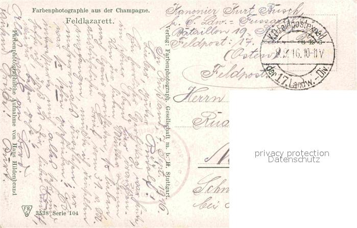 33928069 alte Postkarte Lazarett Champagne postalisch gelaufen Feldpost – Stempel Erhaltung siehe scans [ChrisD19] KatCode: 22300000002300