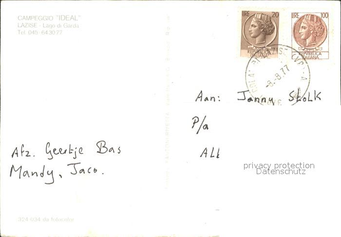 old postcard Lazise Lago di Garda Campeggio IDEAL Strand postalisch gelaufen Erhaltung siehe scans