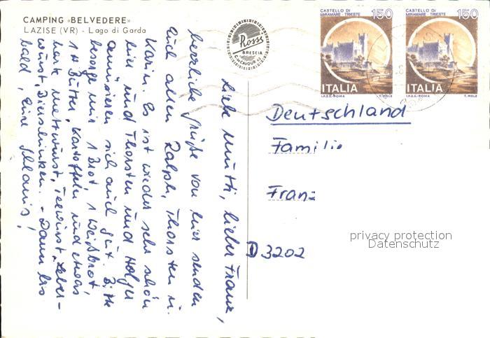 old postcard Lazise Lago di Garda Camping Belvedere Strand Gardasee postalisch gelaufen Erhaltung siehe scans [FriedD77 kt118box]