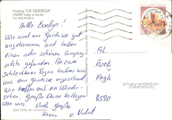 old postcard Lazise Lago di Garda Camping La Quercia Details postalisch gelaufen Erhaltung siehe scans