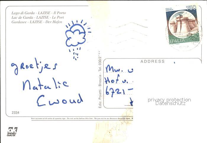 old postcard Lazise Lago di Garda Hafen postalisch gelaufen Erhaltung siehe scans