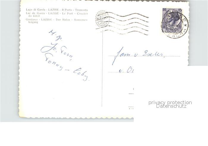 old postcard Lazise Lago di Garda Il porto tramonto Hafen Sonnenuntergang Gardasee postalisch gelaufen Erhaltung siehe scans [FriedD77]