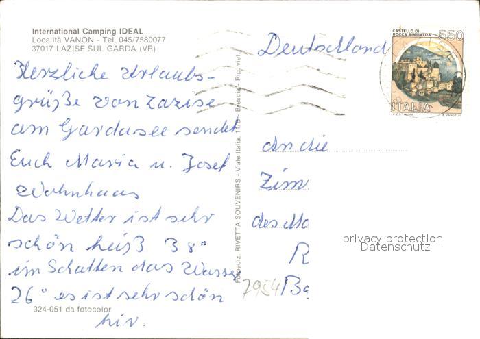 old postcard Lazise Lago di Garda International Camping Ideal postalisch gelaufen Erhaltung siehe scans