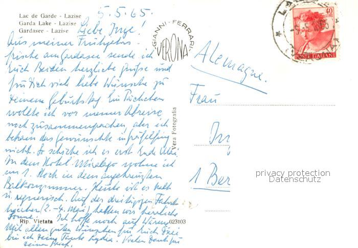 73740540 Lazise Lago di Garda Lungolago postalisch gelaufen Erhaltung siehe scans [WerneD78] old postcard Wern Katcode 11240