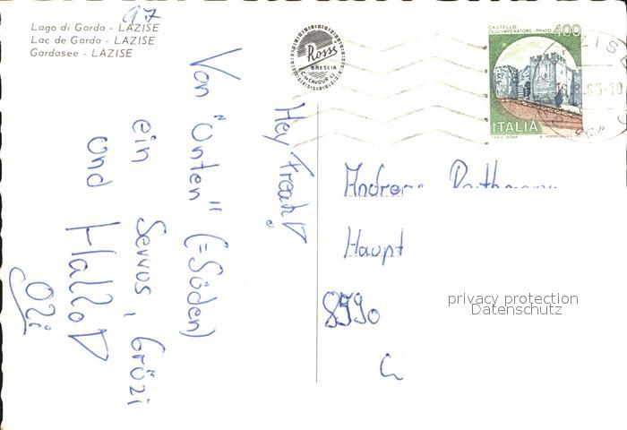 old postcard Lazise Lago di Garda Uferpromenade Hafen Schloss postalisch gelaufen Erhaltung siehe scans