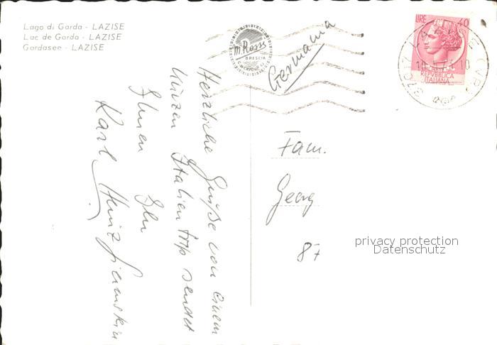 old postcard Lazise Lago di Garda Wassertaxi Hafen Stadtpark postalisch gelaufen Erhaltung siehe scans