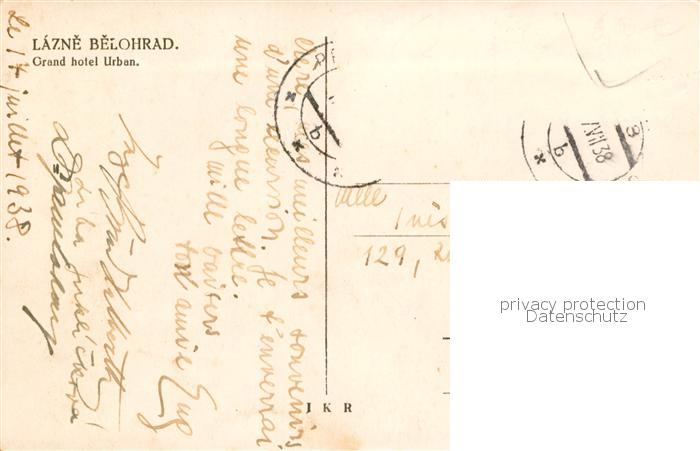 73850234 Lazne Belohrad Bad Bielohrad CZ Grand hotel Urban postalisch gelaufen Erhaltung siehe scans [WerneD78] old postcard Wern Katcode 11520