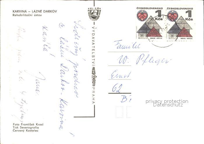 old postcard Lazne Darkov Karvina Rehabilitationszentrum postalisch gelaufen Erhaltung siehe scans