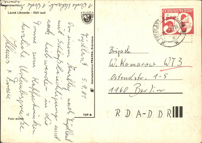 old postcard Lazne Libverda Obri sud Restaurant Fass postalisch gelaufen Erhaltung siehe scans