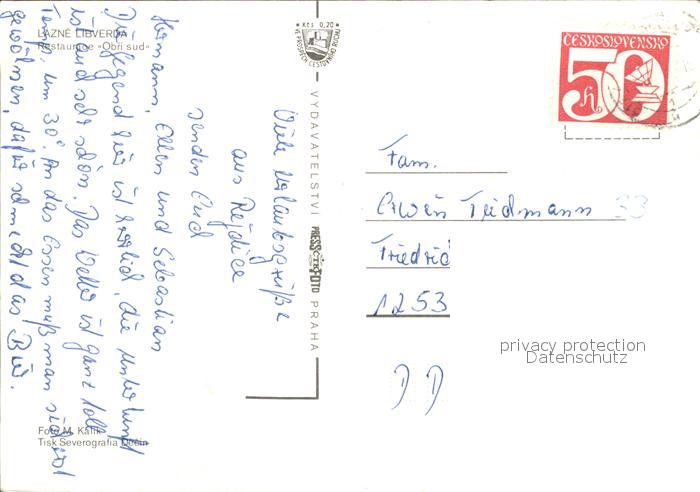 old postcard Lazne Libverda Restaurant Obri Sud postalisch gelaufen Erhaltung siehe scans
